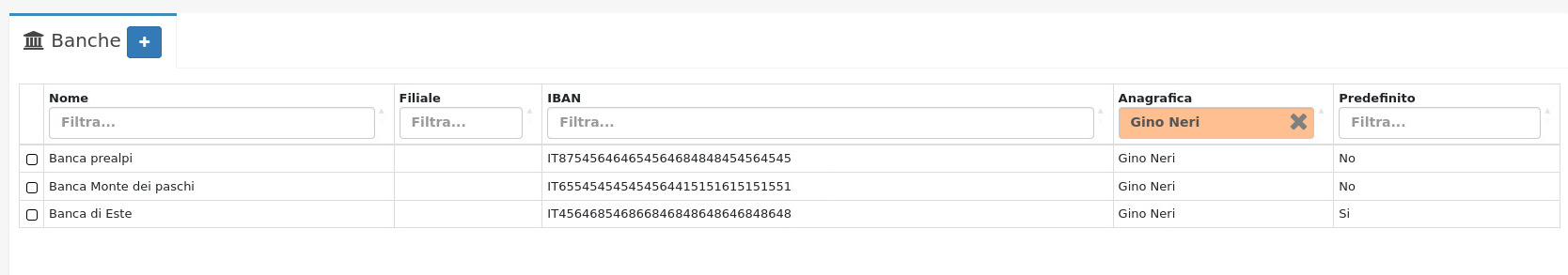 Le banche disponibili per l'anagrafica.