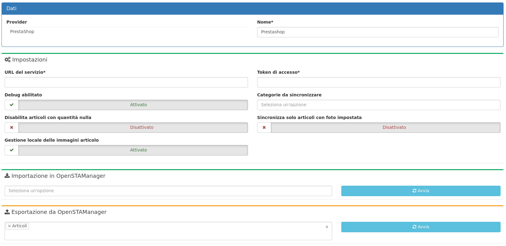 esportazione da OpenSTAManager: permette l'esportazione degli articoli da OpenSTAManager al provider