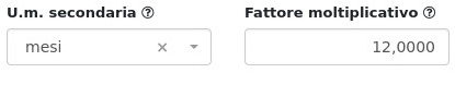 Esempio 2: Nel caso di acquisto di licenze mensili e rivendita annualmente, si dovrà impostare come unità di misura primaria il mese e secondaria l'anno, con relativo fattore moltiplicativo.