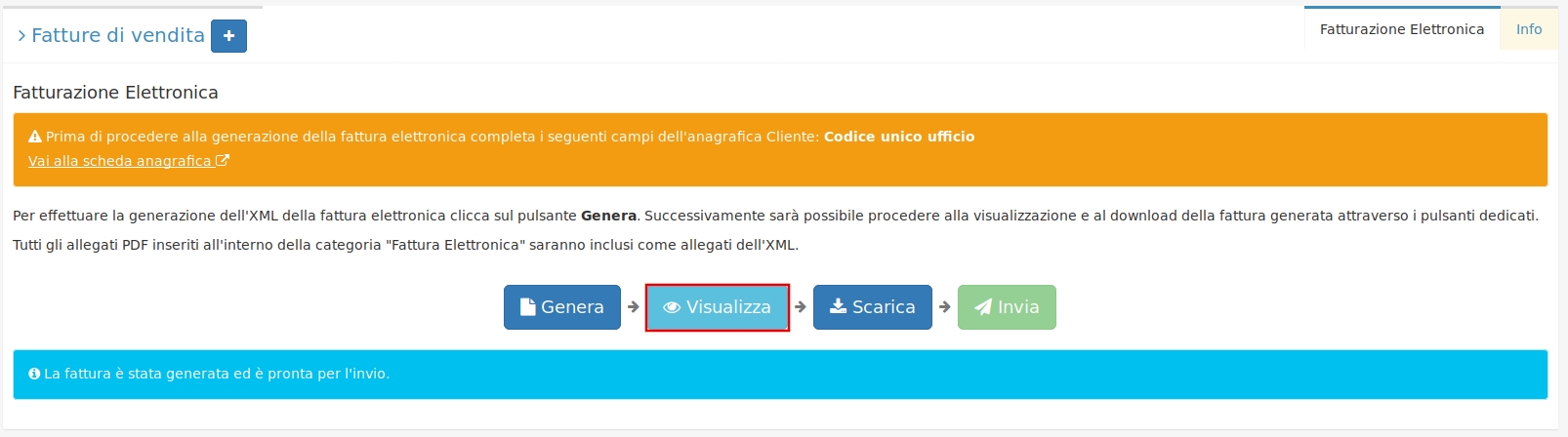 Un' ulteriore verifica della presenza o meno dei Dati appalto è disponibile nell'anteprima della fattura, visualizzabile tramite il pulsante Visualizza in Fatturazione elettronica: