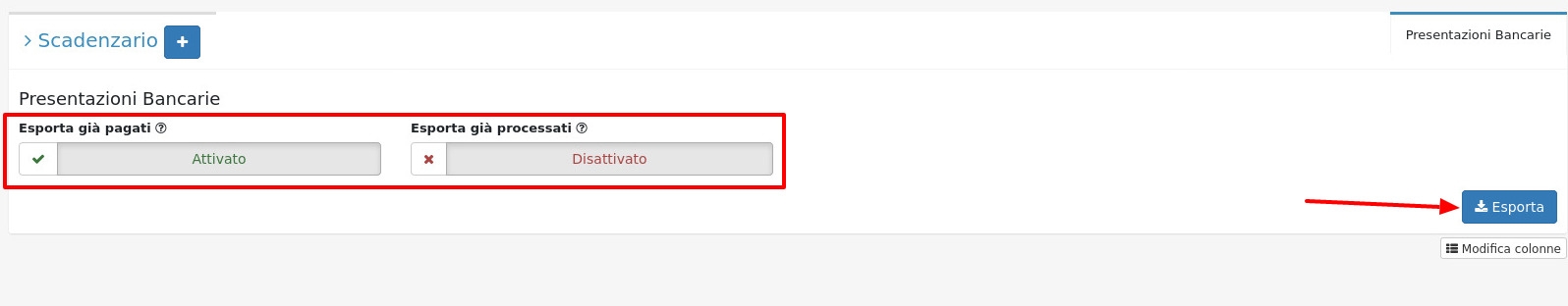 Sarà possibile ora visualizzare l'elenco delle causali dei pagamenti da esportare, per procedere sarà sufficiente cliccare su Esporta.