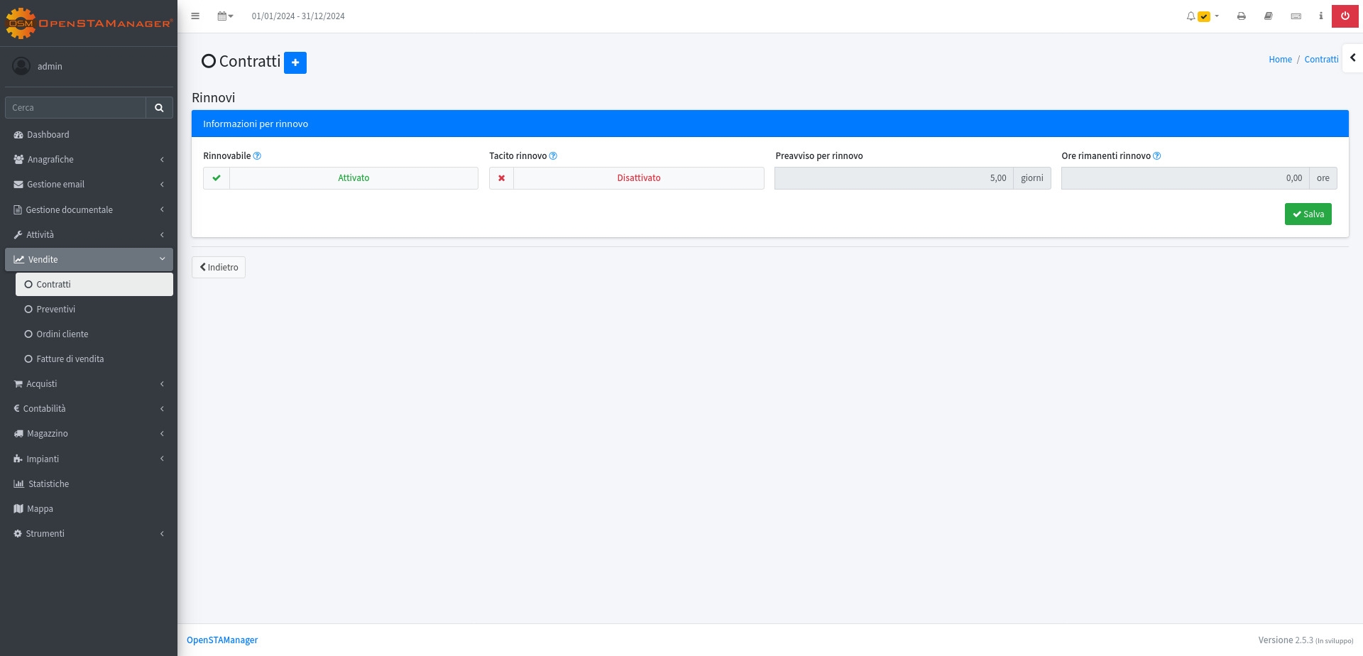 Il widget elenca i contratti in scadenza in base alla data di notifica impostata all'interno del singolo contratto, se impostati come contratti rinnovabili:
