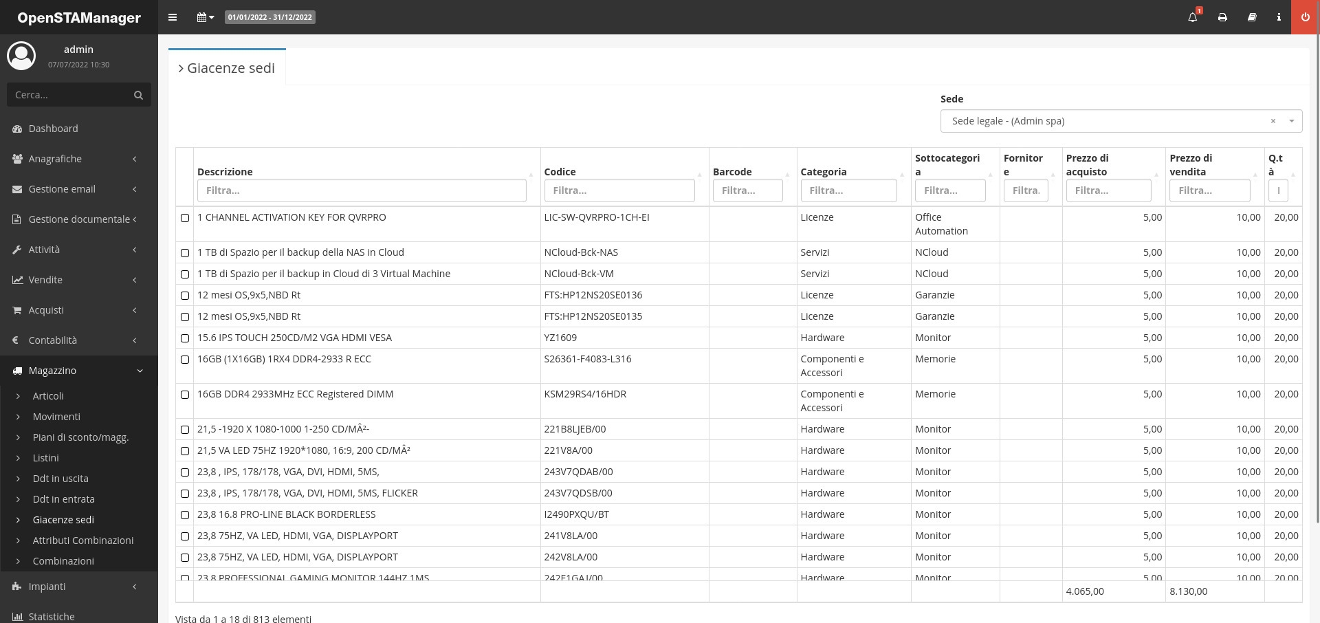 Come gestire le Giacenze nelle varie sedi con OpenSTAManager