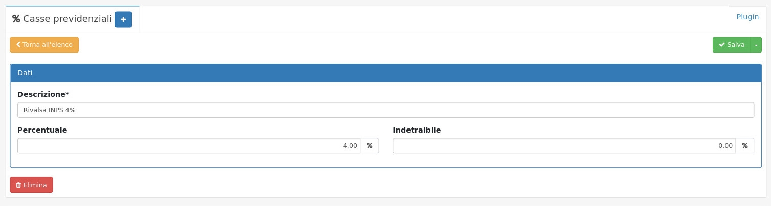 Per creare una nuova cassa previdenziale si dovrà cliccare sul tasto (+).