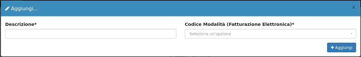 Andranno qui inseriti la descrizione e il codice modalità (fatturazione elettronica) del nuovo tipo di pagamento.