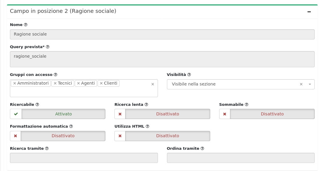 Ricerca lenta (selezionabile per indicare se la ricerca di quel campo è lenta)