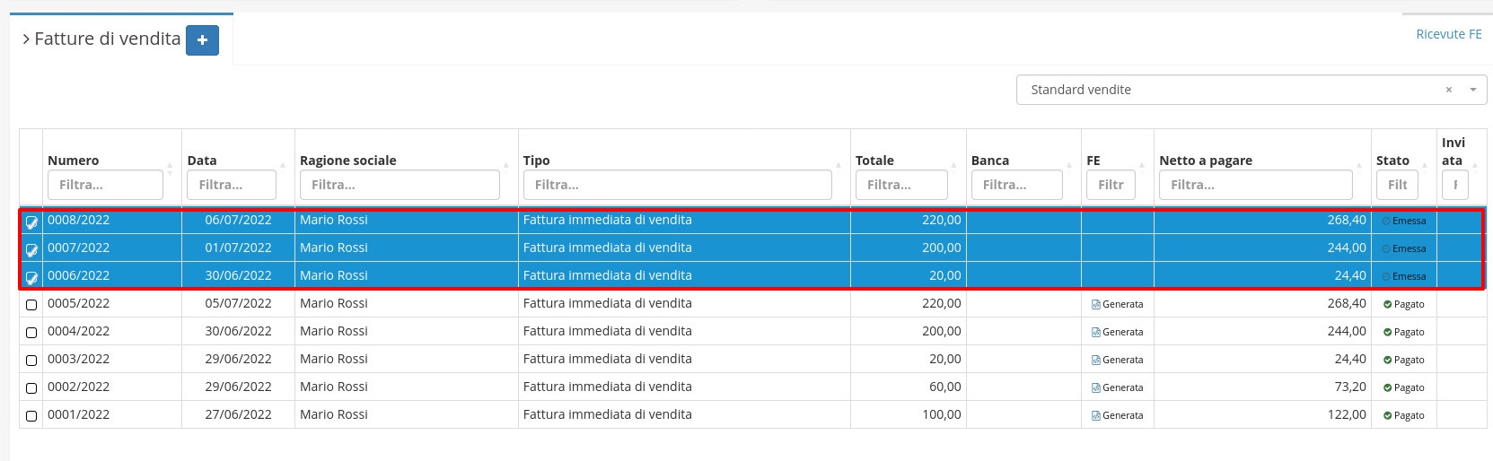 Si potranno ora vedere tra le fatture di vendita i record appena creati.