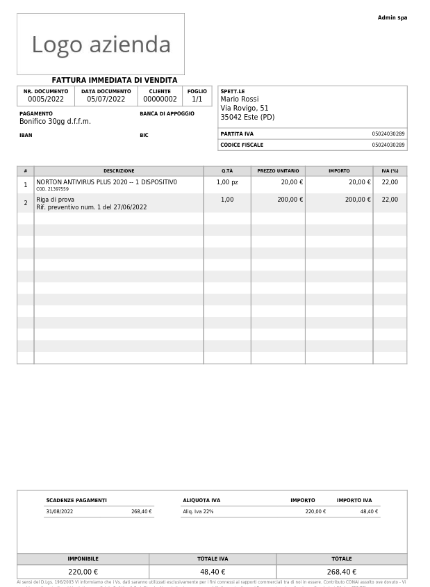 🖨️ Stampa fattura di vendita