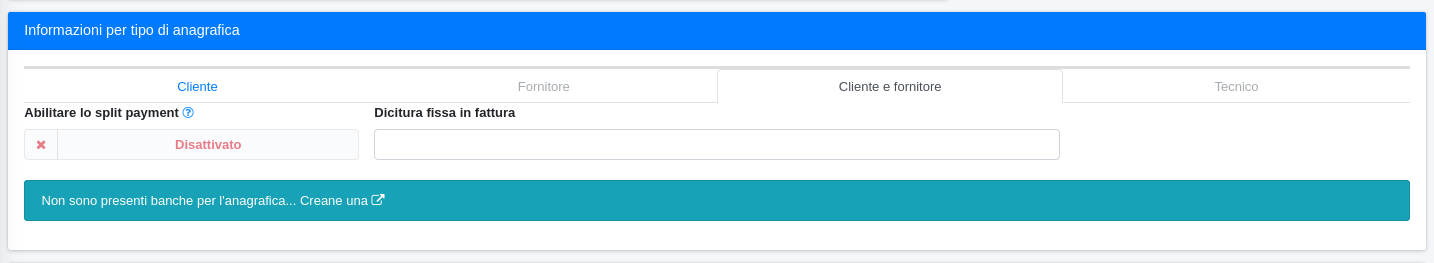In questa sezione si possono impostare dei valori predefiniti in base al tipo di anagrafica: