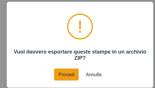 Il gestionale chiederà quindi la conferma di procedere all'esportazione in formato ZIP delle stampe delle attività selezionate.