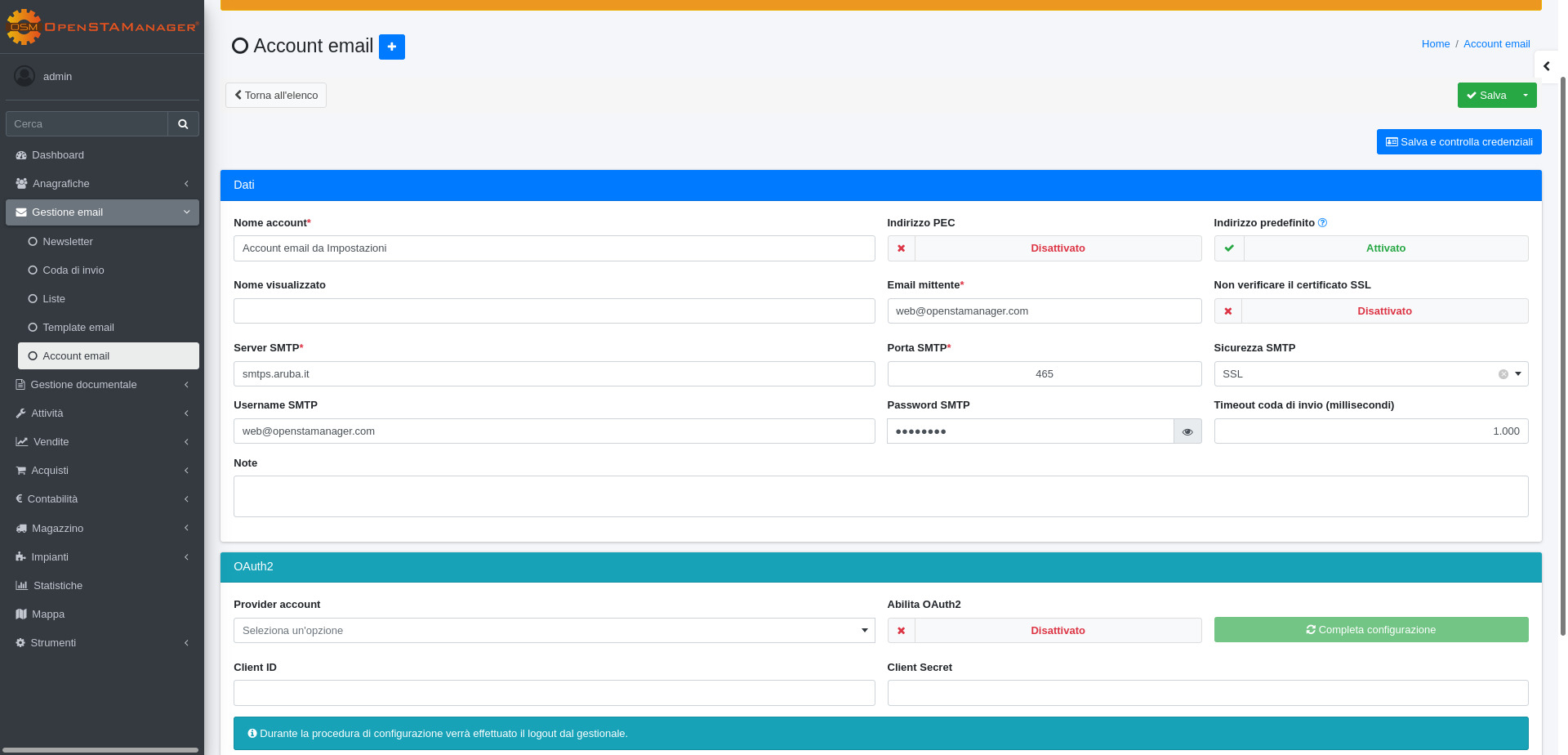 Come configurare un account email in OpenSTAManager
