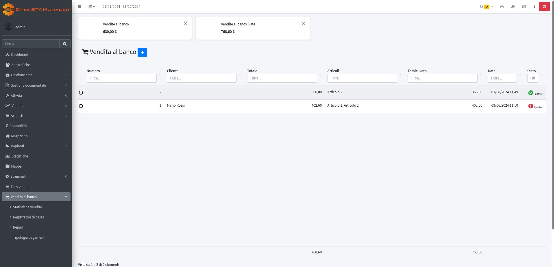 Guida al modulo aggiuntivo Vendita al banco in OpenSTAManager