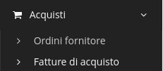 Nel menu a tendina è possibile trovare i moduli Ordini fornitore e Fatture di acquisto.