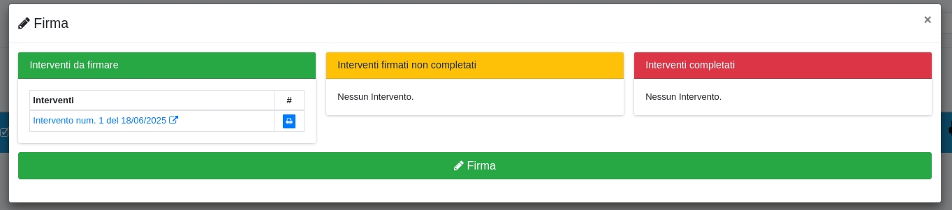 Con questa funzionalità è possibile firmare massivamente gli interventi