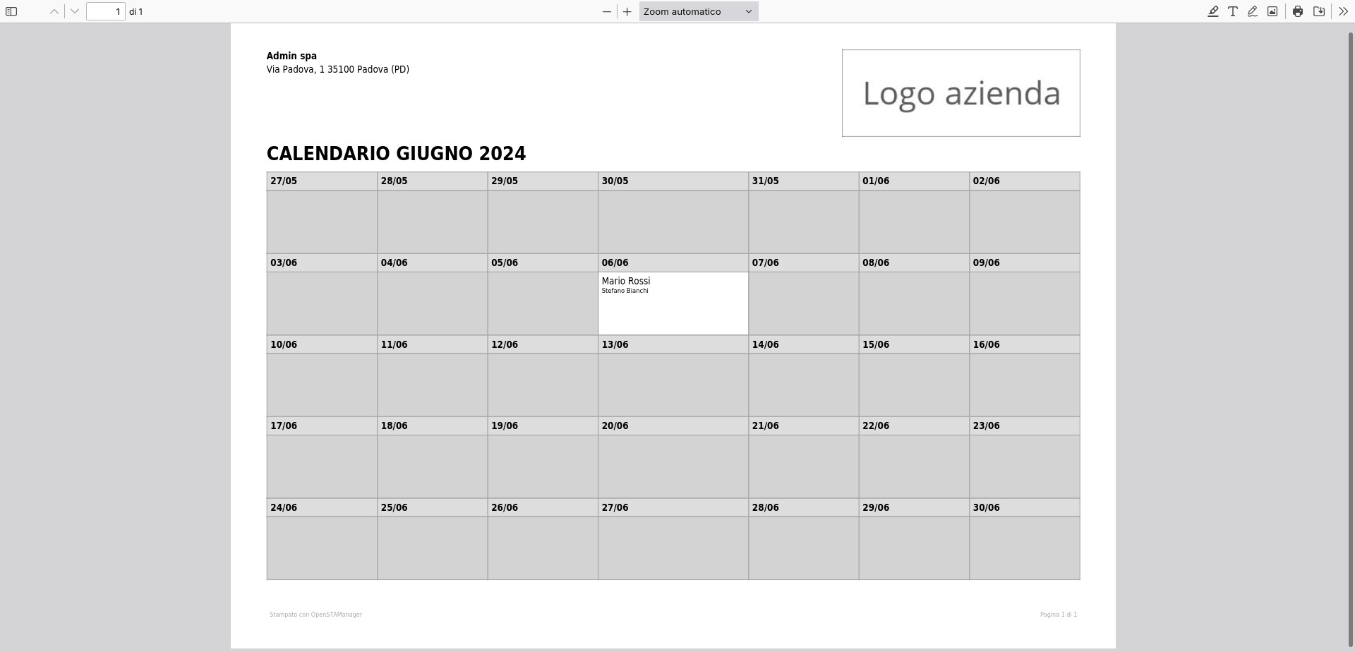 Grazie al calendario questo modulo offre una visione generale degli Interventi, a cui è possibile applicare dei filtri.