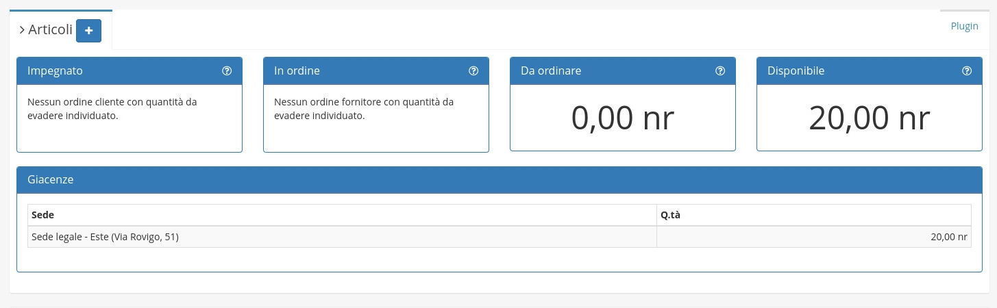 Questo plugin è molto utile per la gestione delle giacenze a magazzino, infatti è possibile visualizzare le seguenti informazioni: