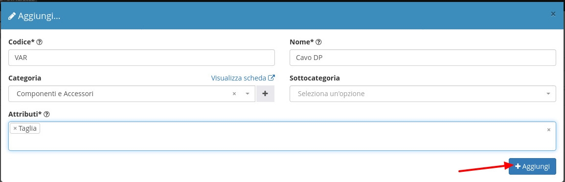 Cliccando su Genera tutte le varianti verrà creato un nuovo articolo di magazzino con le caratteristiche relative ai valori dell'attributo: