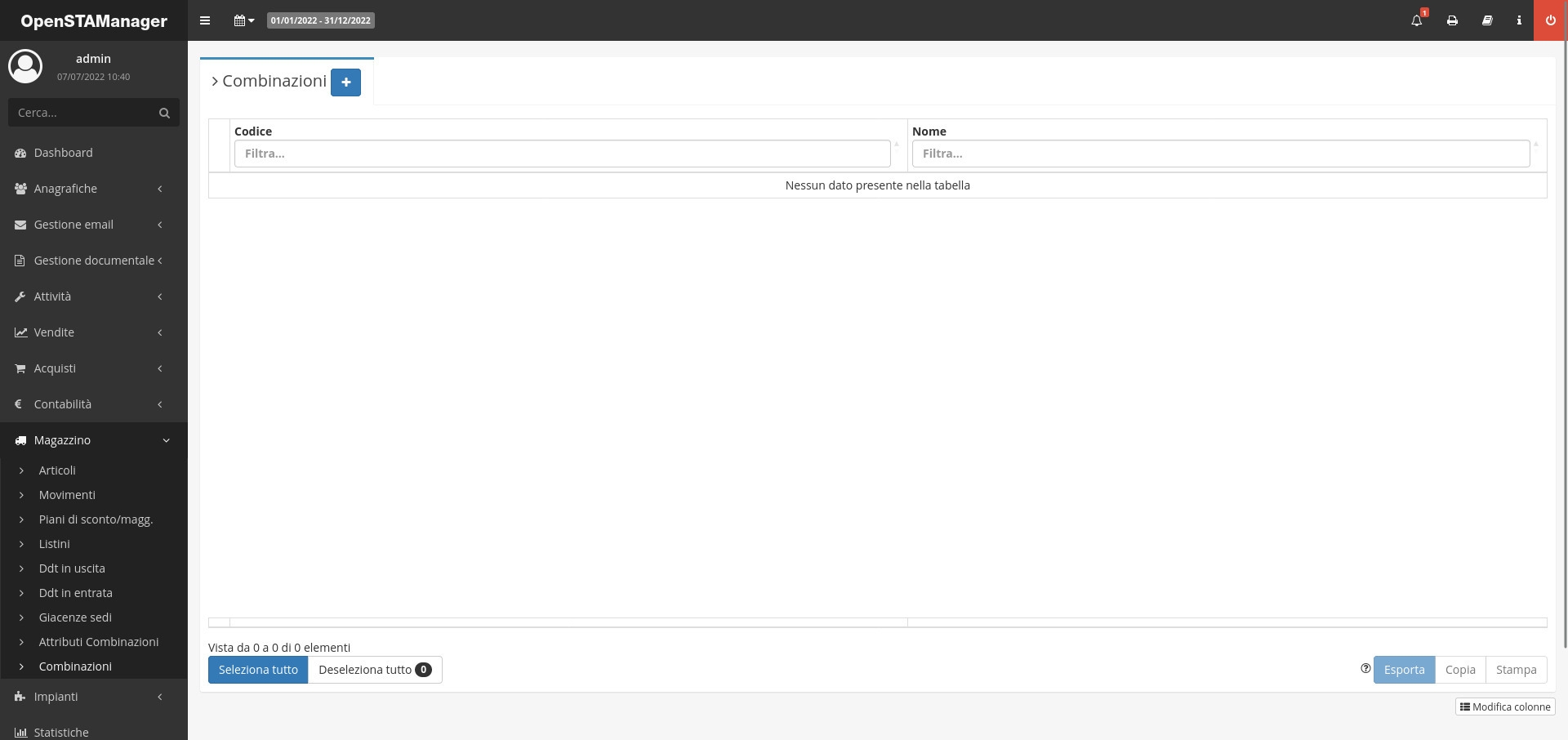 Per creare una combinazione si dovrà cliccare sul tasto (+).