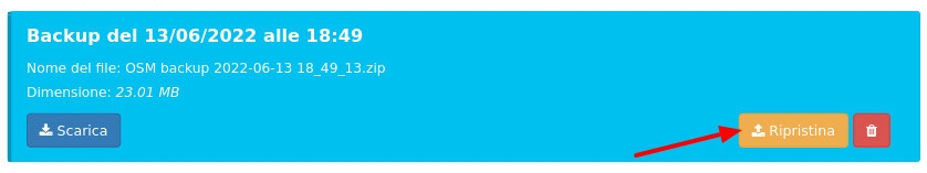 E' possibile ripristinare un backup cliccando sul relativo tasto dall'elenco backup, oppure caricandone uno manualmente nella sezione Ripristina backup.