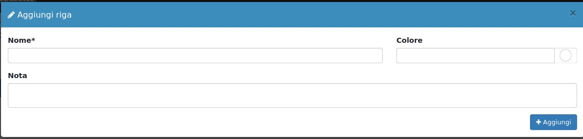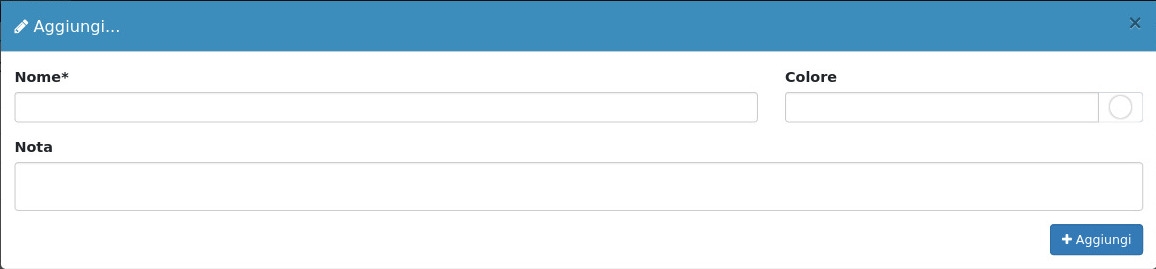 Per aggiungere una nuova sottocategoria si dovrà cliccare su (+ Sottocategoria) e inserire Nome e Colore.