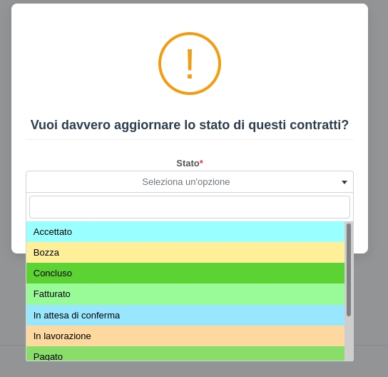 Con questa azione di gruppo รจ possibile selezionare uno stato e impostarlo massivamente a tutti i contratti selezionati: