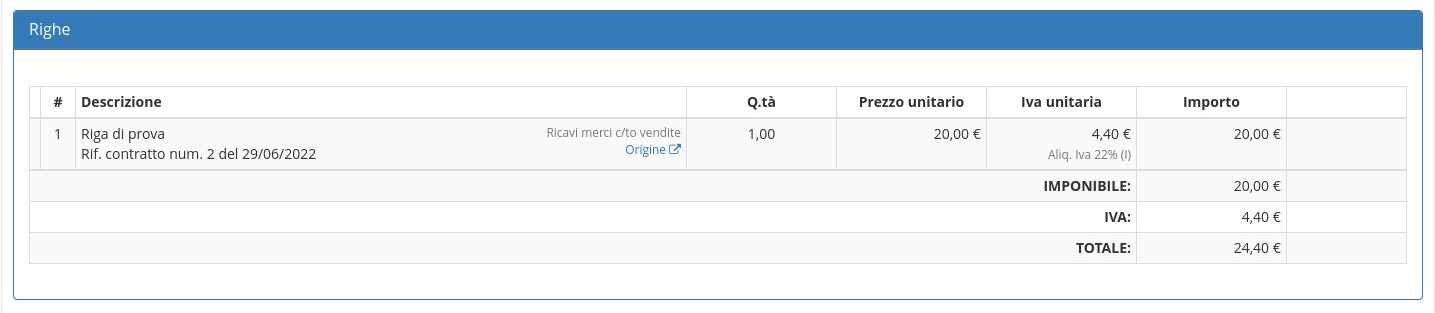 Sarร ora possibile visualizzare la fattura di vendita appena creata nel modulo Vendite/Fatture di vendita.