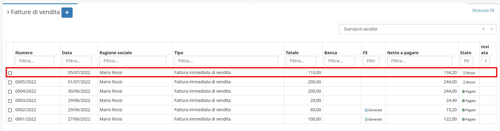 Sarà ora possibile visualizzare la fattura di vendita appena creata nel modulo Vendite/Fatture di vendita.