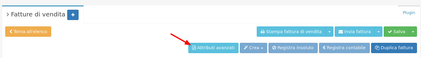 Dopo aver registrato correttamente l'anagrafica si dovrà procedere ad emettere fattura da Vendite/Fatture di vendita cliccando sul tasto (+).