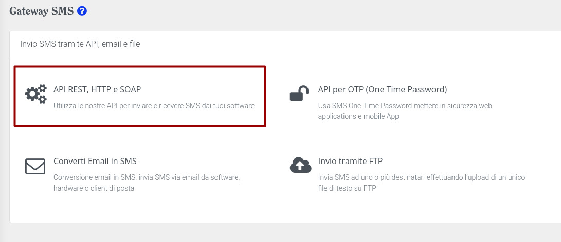 Cliccando su API REST, HTTP e SOAP