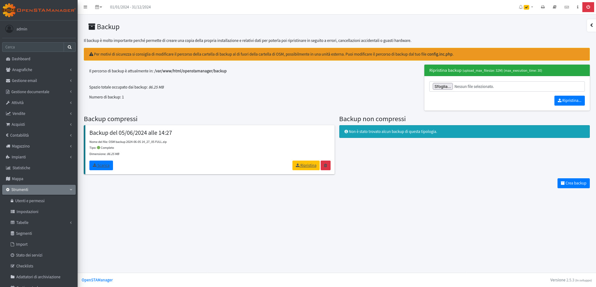 Come effettuare un backup dei dati in OpenSTAManager