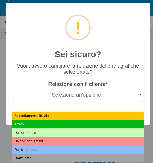 E' qui possibile cambiare la relazione delle anagrafiche selezionate: