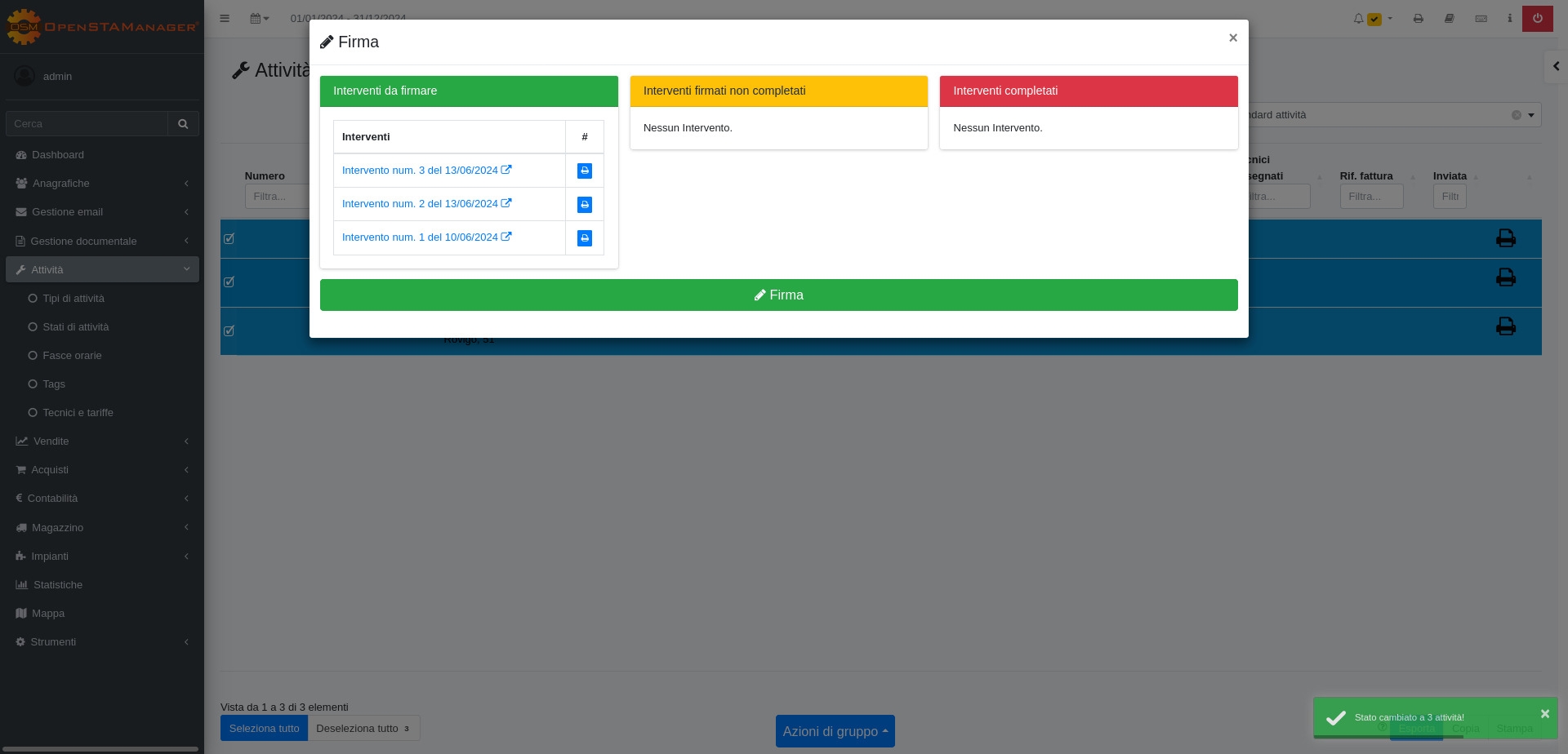 Con questa funzionalità è possibile firmare massivamente gli interventi