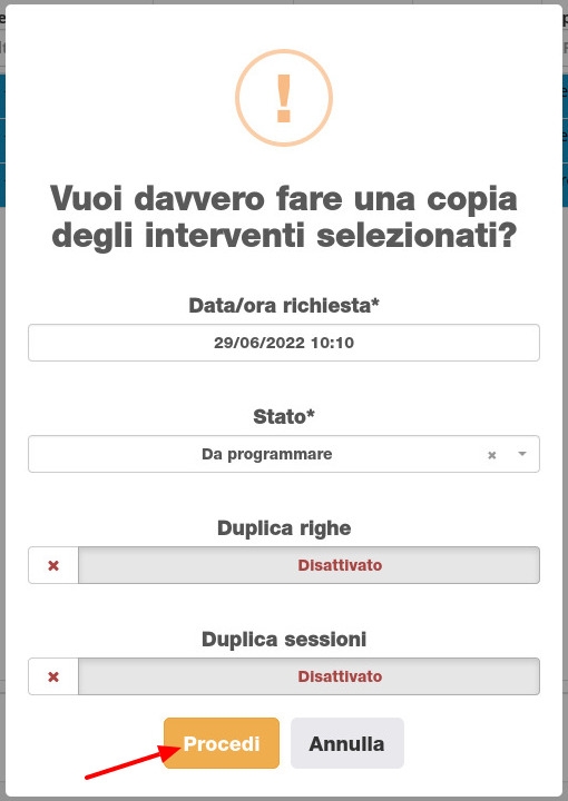 Cliccando su Procedi il gestionale procederà alla duplicazione.