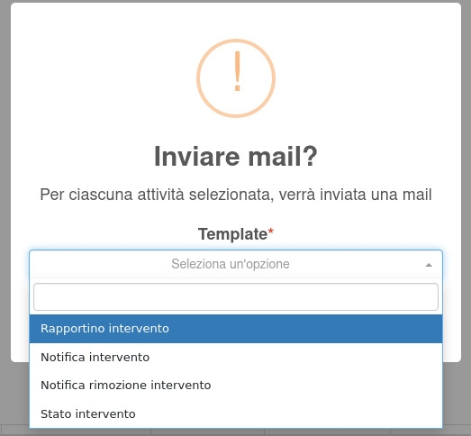 Cliccando sul tipo di documento da inviare si verrà indirizzati al template email compilato con i dati dell'attività, dove sarà possibile inviare la mail cliccando su Invia.