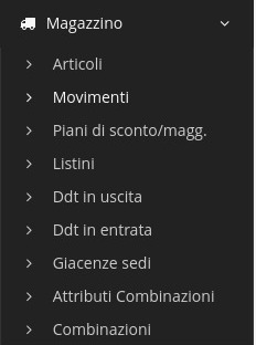 Il modulo è raggiungibile dal menu laterale del gestionale, sotto il link Magazzino.