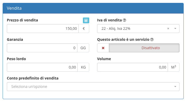 • Abilitare in caso l'articolo sia un servizio