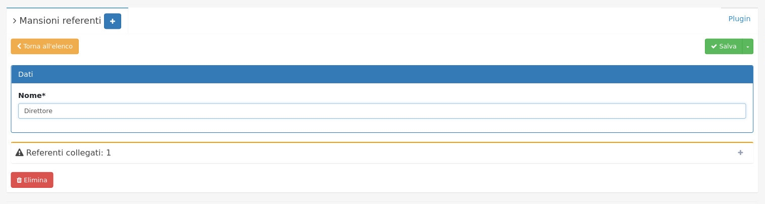 Cliccando sul record da modificare si aprirà la schermata di dettaglio, da cui sarà possibile modificare il nome della mansione referente interessata.
