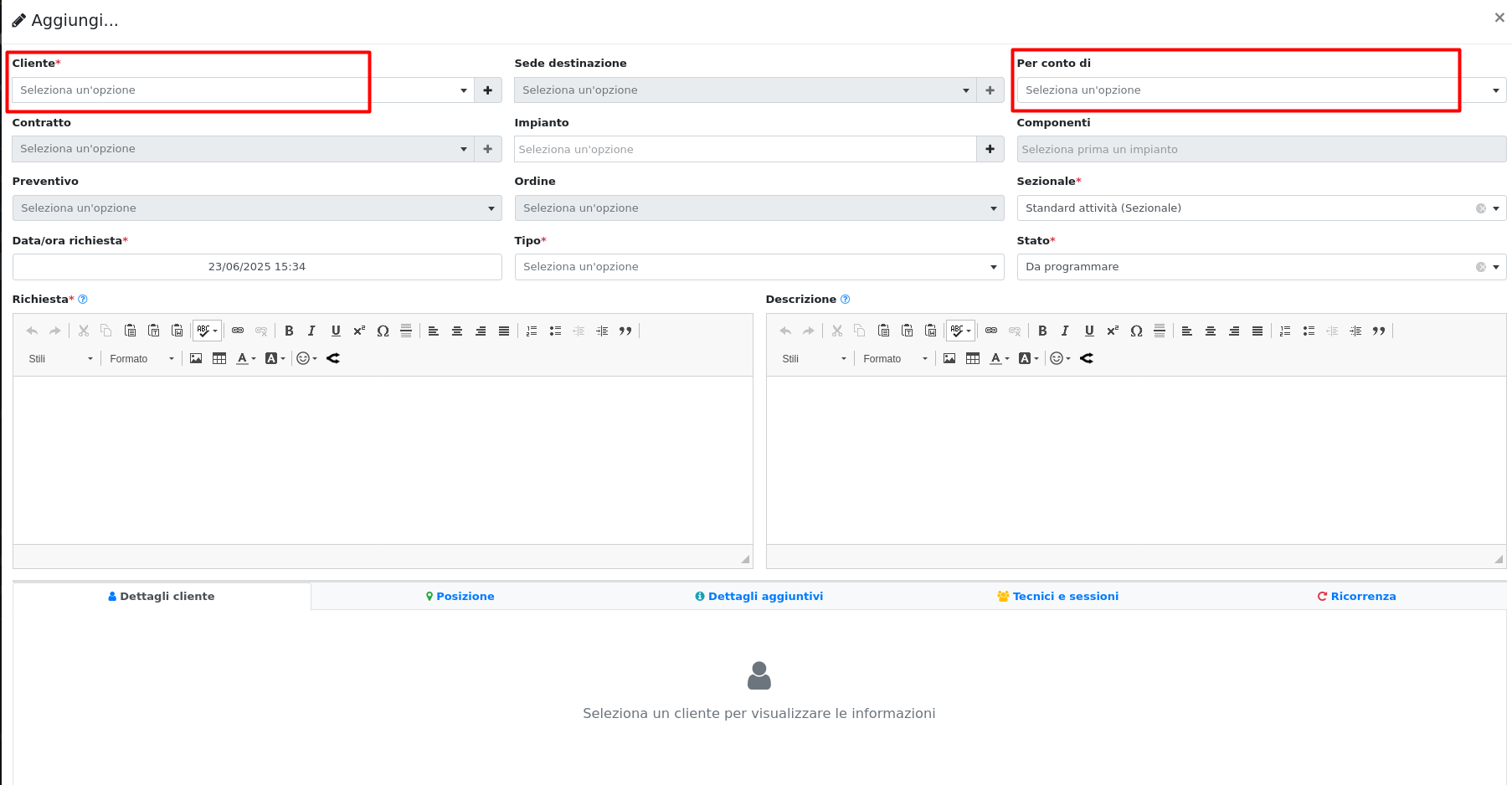 La funzionalità 'Per conto di' è stata sviluppata per gestire quelle situazioni in cui il committente non coincide con il risolutore delle fatture relative agli interventi che verranno svolti.