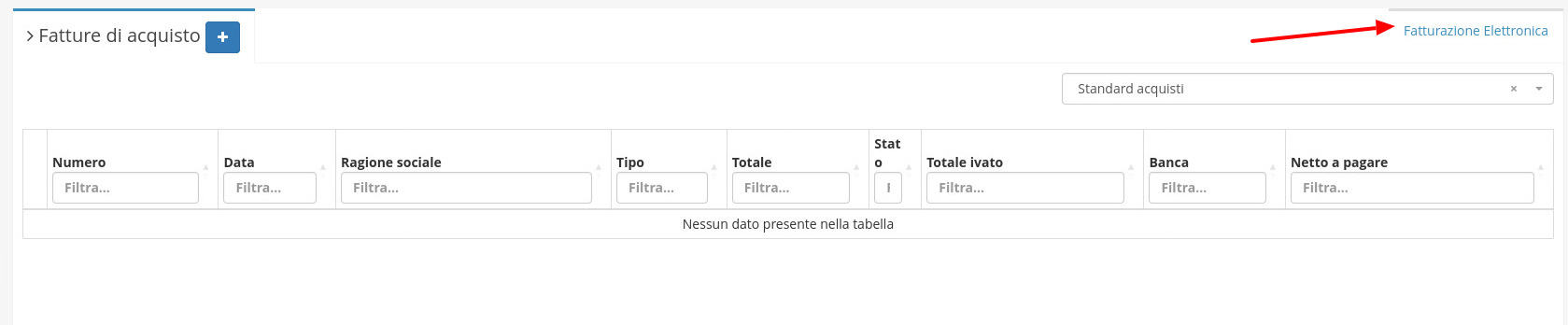 Per scaricare le fatture passive dai fornitori è necessario cliccare su Fatturazione elettronica dal modulo Fatture di acquisto.