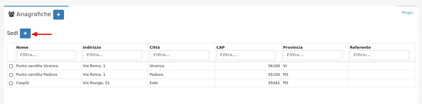 Per registrare una nuova sede sarà sufficiente cliccare sul tasto (+).