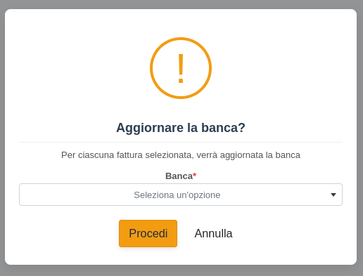 Con questa operazione è possibile cambiare la banca associata ai documenti selezionati