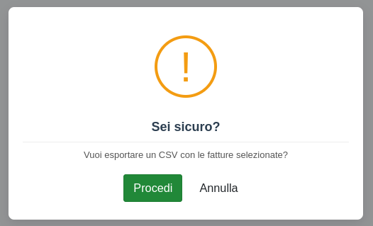 Con questa operazione è possibile esportare un file CSV con i dati relativi alle fatture interessate
