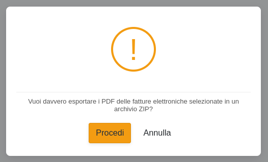 Con questa operazione è possibile esportare i PDF delle stampe delle fatture elettroniche selezionate in un file ZIP
