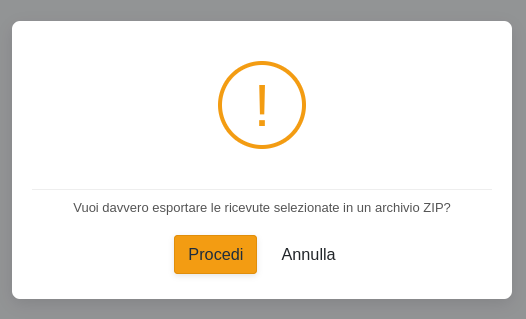 Con questa operazione è possibile esportare le ricevute delle fatture selezionate, in un file ZIP