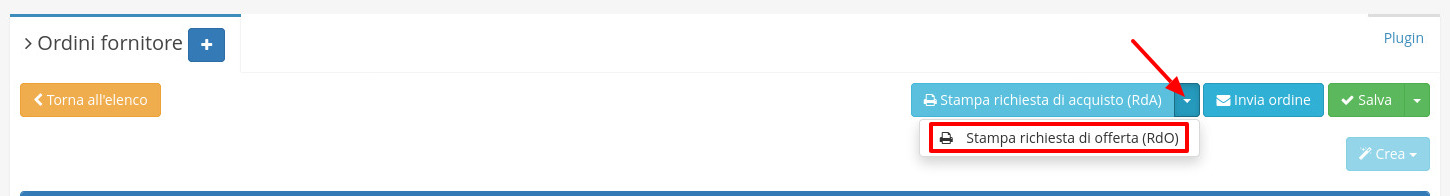 Dal modulo Ordini fornitore