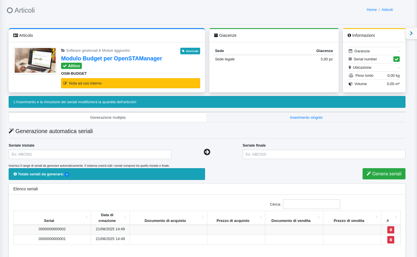 Guida al plugin Serial in OpenSTAManager