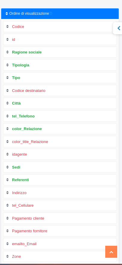 Nella sezione Ordine di visualizzazione si può cambiare l'ordine dei campi trascinandoli: