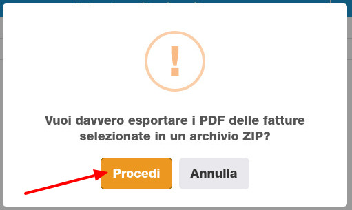 Il gestionale chiederร quindi la conferma di procedere all'esportazione in formato ZIP dell'archivio di PDF delle fatture di vendita selezionate.