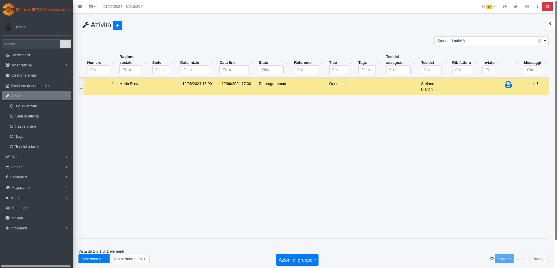 Nel modulo Attività si potrà ora vedere un intervento con stato Da programmare.