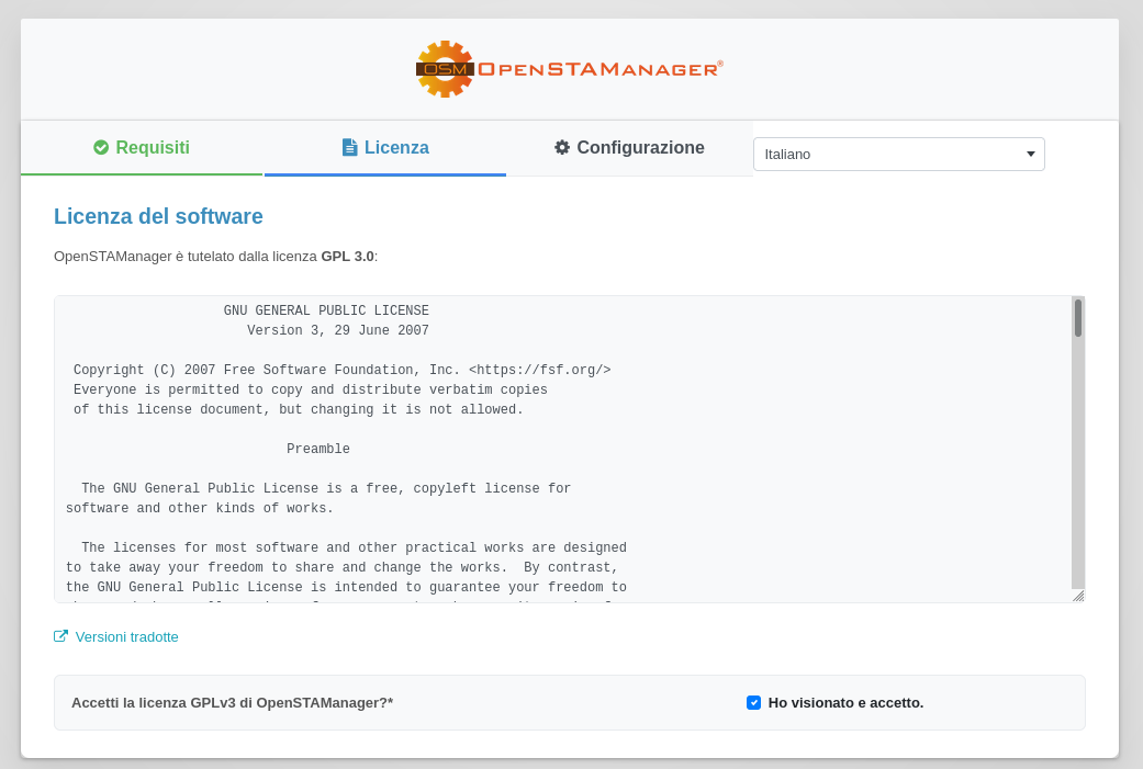 Per procedere all'installazione di OpenSTAManager è necessario seguire i seguenti punti: